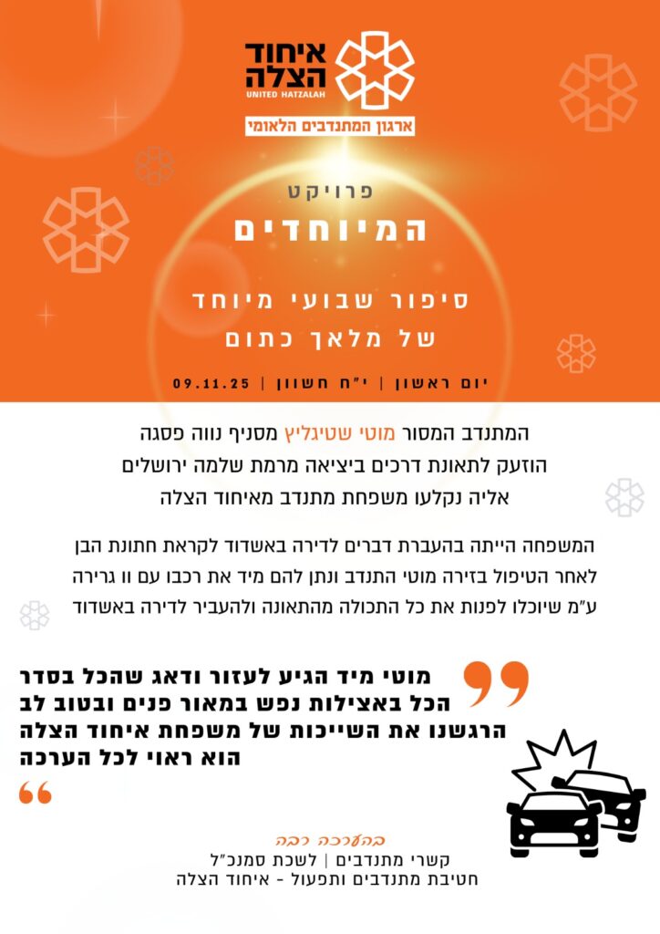 מסכמים שבוע של פעילות עם 8 משמרות אט"ן, לבן משופר ורכב ארגוני תודה מיוחדת לחברי היחידה שנרתמו למשמרות, הרגישו אותכם ובענק תודה מיוחדת למוישי וינר האלוף על הטיפול בשיבוץ המשמרות בזכותכם טיפלנו בעשרות מקרים ועשינו עשרות פינויים! מחכים ומצפים לראותכם בשטח גם שבוע הבא בכל הכח תודה רבה לאריאל בן דוד מנהל יחידת ALS על […]