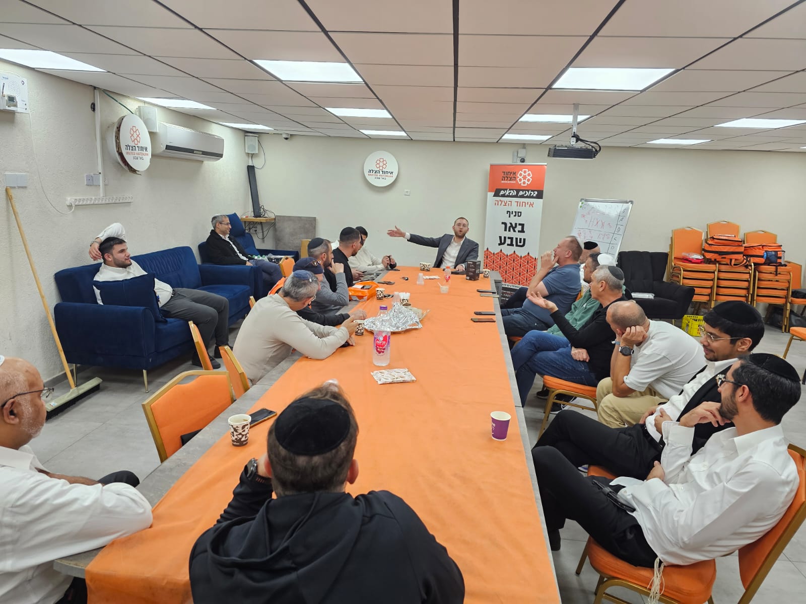 כמידי שבוע, התקיים בבית המתנדב בבאר שבע מפגש למתנדבי הסניף ושיעור הלכה