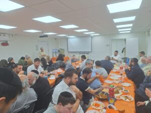 המתנדבים התיישבו לארוחה חגיגית סביב שולחנות ערוכים