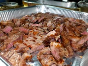 המתנדבים הסבו סביב שולחנות ערוכים ונהנו מארוחת ערב בשרית עשירה ויוקרתית.